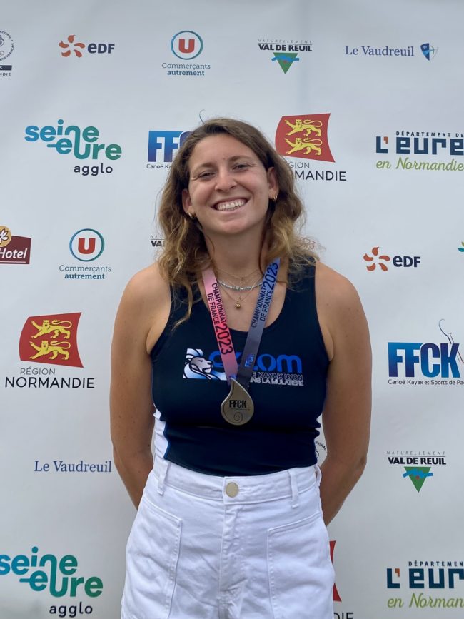 » J’ai démarré le canoë-kayak en 2013 au club du CKLOM, où je suis toujours licenciée. J’ai de multiples titres de championne de France, je suis en équipe de France depuis 2017 et donc participer plusieurs fois aux championnats d’Europe, championnats du monde, coupe du monde et les jeux européens 2023.