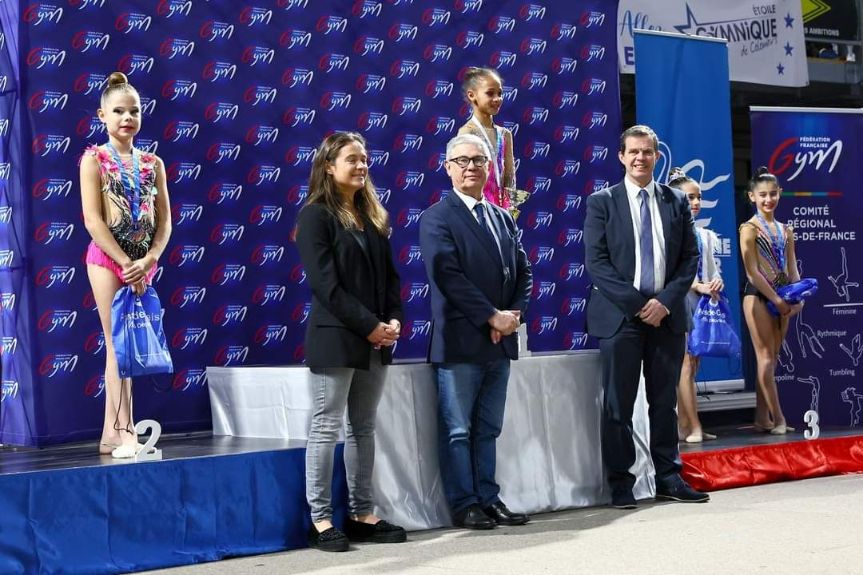 LYON GR_Le podium JUde govou Championne de France Natc 10-11 ans_Au centre Mr James Blateau, Président de la FFGym