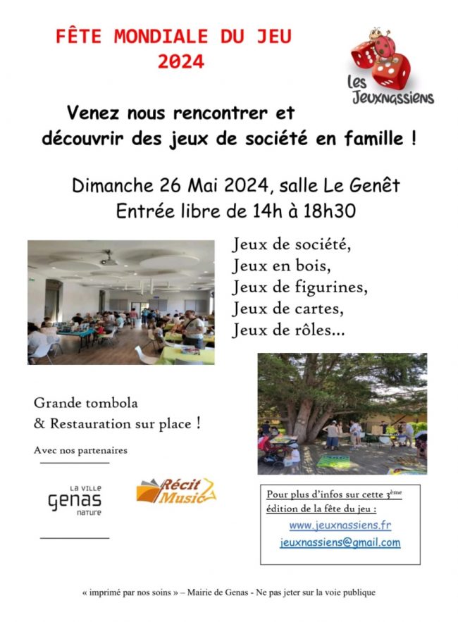 - de 14 h à 18 h 30 : Fête Mondiale du Jeu (Salle le Genêt).